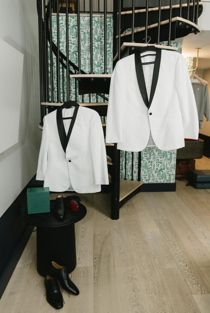 To start the day, Marco and Elijah got ready together at the Woodlark Hotel, and it immediately set the tone. Rather than separating, they shared coffee, laughs, and quiet moments with their dog right by their side. Because of that choice, the morning felt calm instead of chaotic. From my perspective as their photographer, this was such a grounding way to begin the day. It allowed me to capture real moments instead of forced ones, and you could feel how comfortable they were just being together. Honestly, who says you have to do it the “traditional” way anyway?